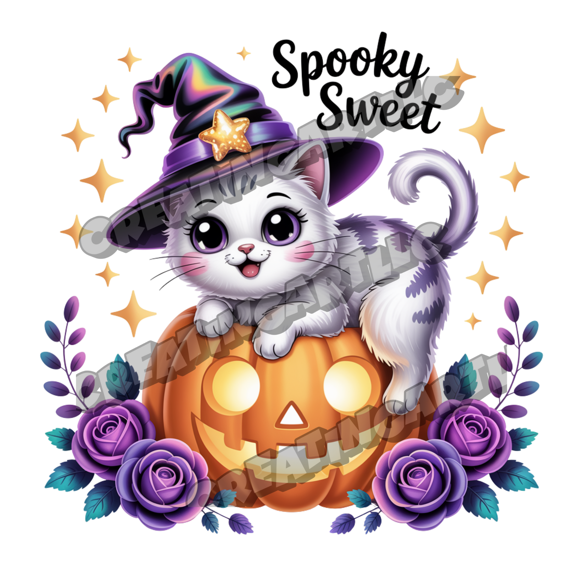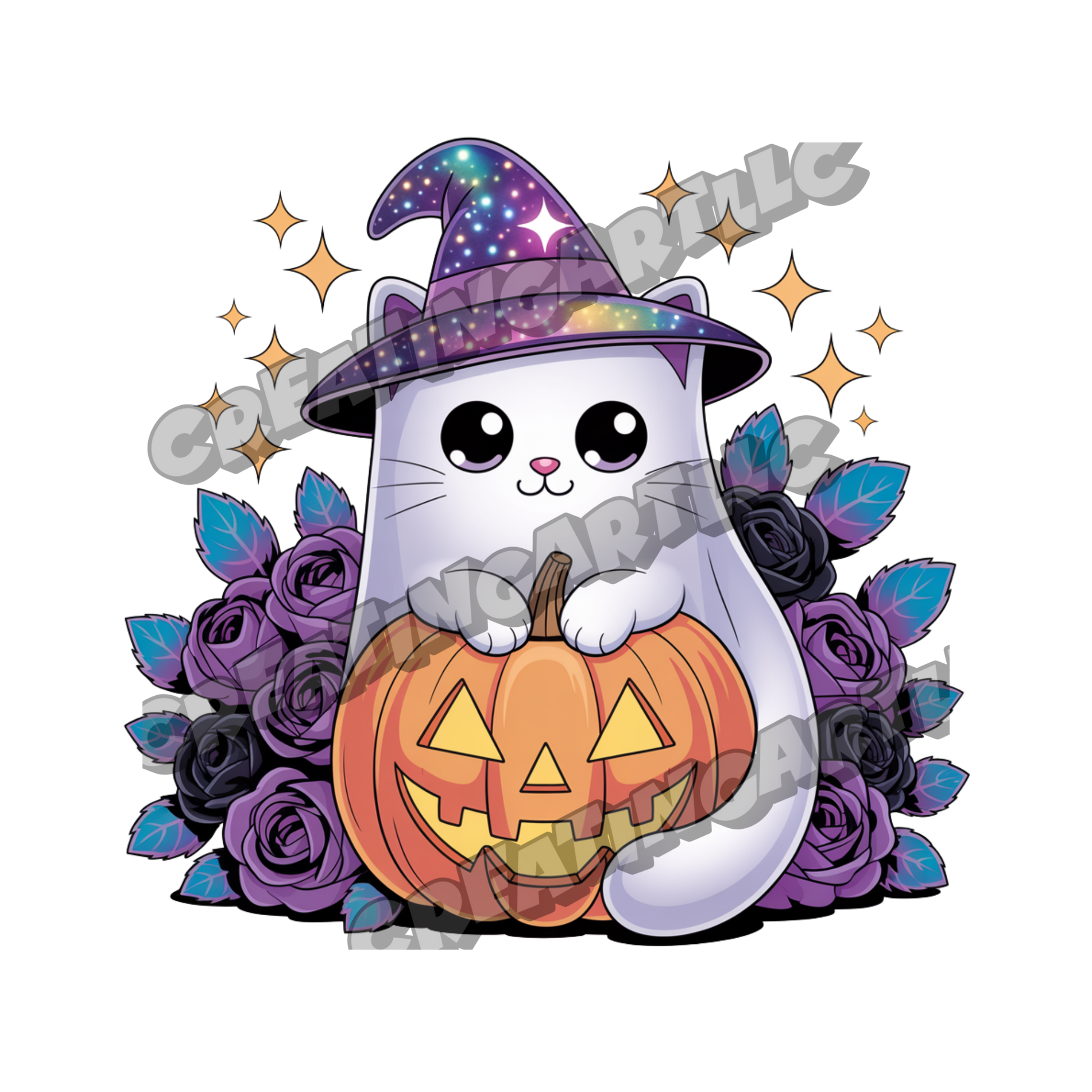 Cute Halloween Kawaii Cat Clipart Bundle – Witch Hat Cat, Pumpkin, and Gothic Rose Digital PNGs for Stickers, Sublimation, Crafts & More – 8 High-Quality Files